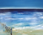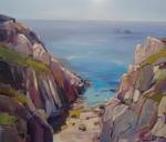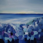 2016Rotsen met ertussen een pad naar het water. Een scala van kleuren en sfeer