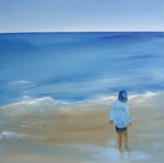 2016Kindje op het strand, lekker op vakantie . Een klein peutertje op het grote strand.