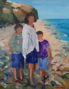 2016Broer en zus op het strand. Ze kijken naar de zee, naar de golven.